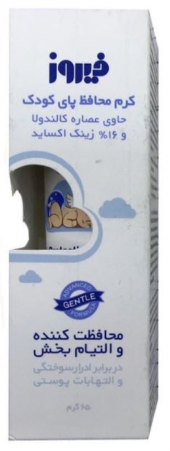 کرم محافظ پای کودک فیروز فاقد هرگونه پارابن ، الکل و مواد رنگی ساخته شده است. کرم محافظ پای کودک فیروز با عصاره کالاندولا و 16% زینک اکساید پوست کودک را در برابر هرگونه التهاب ایمن کرده و با طرز ساده استفاده راحتی و آرامش را به شما و کودک عزیزتان هدیه خواهد نمود.